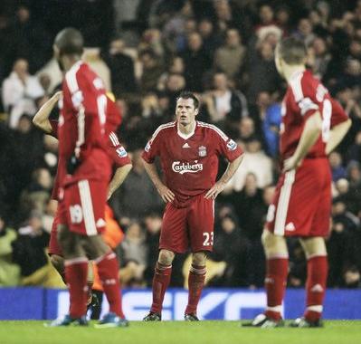 Spurs戦でオウンゴールを献上してしまったCarragher。彼も何が起こったか分からなかったそうですが、見ているコッチも何だかキツネにつままれたような感じでした(笑)