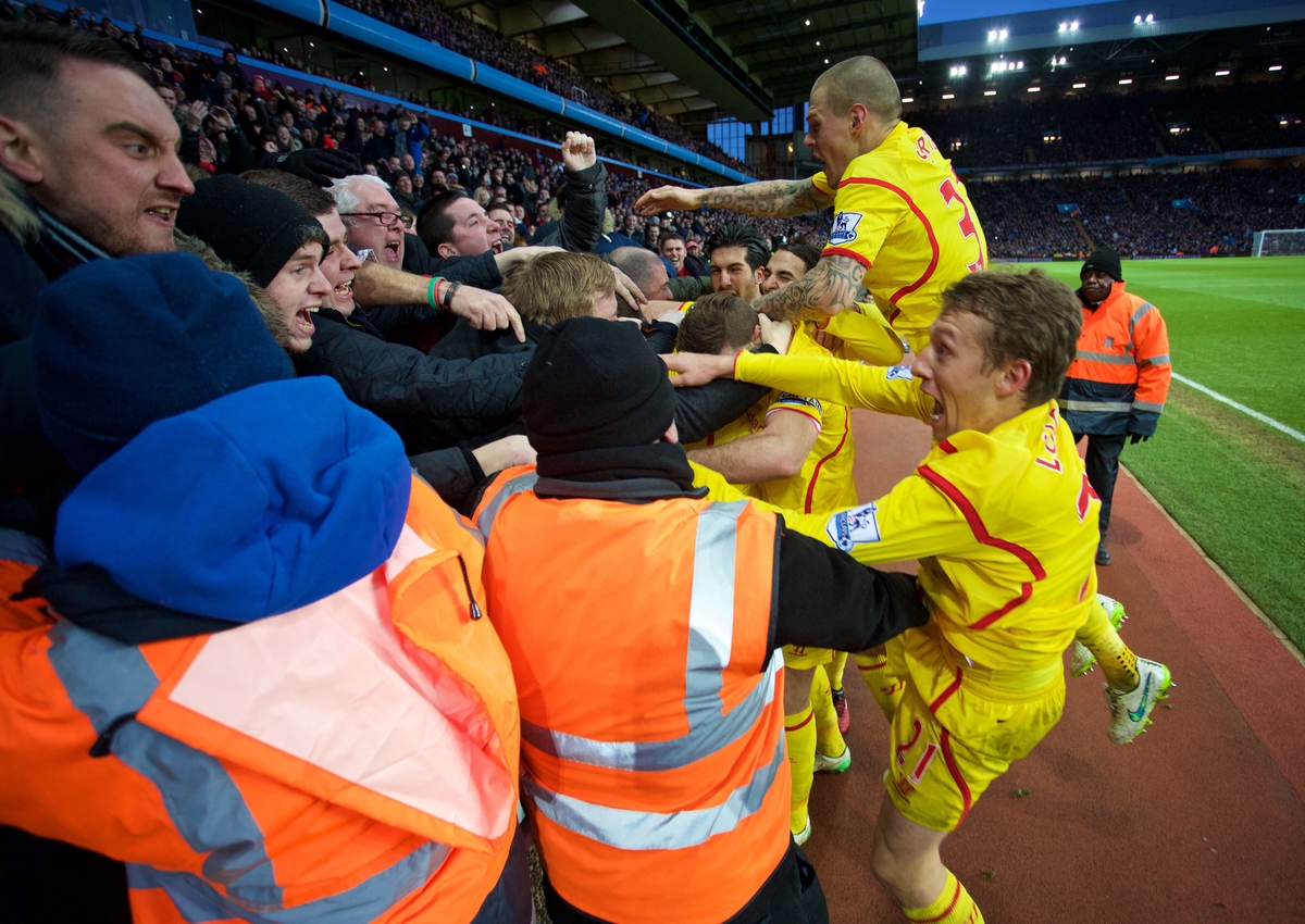 キックオフからほどなくして、両サポーターからGerrardのチャントの大合唱(あちらは性懲りもなく"Slip Gerrard Gerrard"でしたが(苦笑))。